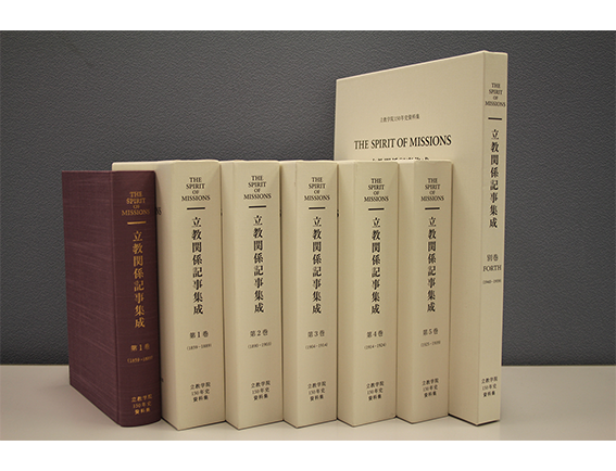 『THE SPIRIT OF MISSIONS 立教関係記事集成』は、2009年の立教学院創立135周年・日本聖公会宣教150周年を記念して、立教学院150年史の先駆けをなす資料集として刊行されました。立教学院は、1874年にアメリカ聖公会の遣日宣教師によって開設された私塾を起点としています。この在日宣教師がアメリカ本国に送信した書簡や、伝道情報を掲載していたのが、アメリカ聖公会伝道機関誌『スピリット・オブ・ミッションズ』です。本書は、『スピリット・オブ・ミッションズ』の1859年から1939年(第1巻から第5巻)とその後継誌『フォース』の1940年から1959年(別巻)に掲載されている立教関係記事とその抄訳を収載しています。